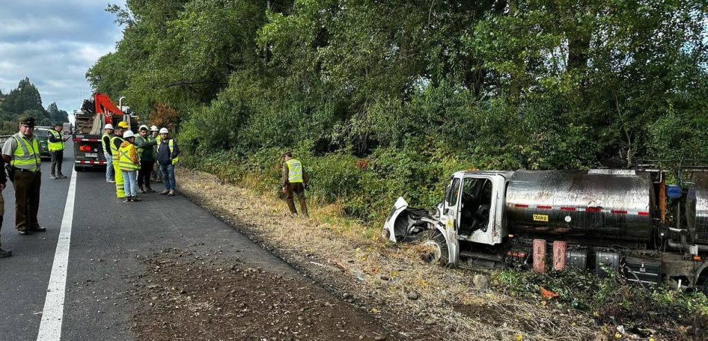 Un camión de alto tonelaje sufrió un accidente en la Ruta 5 Sur, a la altura del kilómetro 861 en la comuna de Paillaco. Según información preliminar, el vehículo salió de la vía y cayó en una zanja por razones que aún se investigan. Afortunadamente, el conductor se encuentra en buen estado de salud y fue trasladado por personal del SAMU al Hospital de Paillaco.