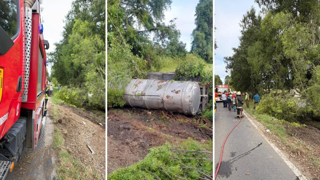 Durante la mañana de este domingo 7 de diciembre, el Cuerpo de Bomberos de Paillaco fue despachado a la ruta Reumén–Nontuelá tras el volcamiento de un camión utilizado para el transporte de riles.