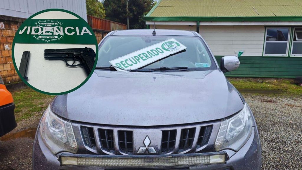 El operativo se llevó a cabo alrededor de las 16:50 horas en la intersección de las calles Lore Cochrane con Barros Arana. En ese lugar, Carabineros identificó y recuperó una camioneta Mitsubishi L200 Dakar, año 2019, color gris grafito, la cual presentaba un encargo vigente por robo en la Región de Los Ríos y circulaba con patentes falsas fabricadas artesanalmente.
