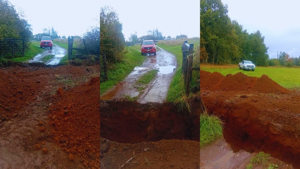 Rodrigo Jiménez, vecino del sector y uno de los principales afectados, relató a noticiaslosrios.cl que la vecina Ingrid Brandt Furniel —representante de la Sociedad Agrícola Santa Inés Limitada— impidió el paso este lunes con maquinaria, generando una zanja que obstaculizó completamente el ingreso. “Ahora vino en la mañana, trajo maquinarias e hizo una zanja a la entrada de mi tranca. Yo estoy sin acceso de ir a trabajar, mis niños están en el colegio. Ahora, en este momento, los estoy esperando a pie, como a dos kilómetros de la casa. Se raja lloviendo. No tengo cómo movilizarme ahora”, expresó.