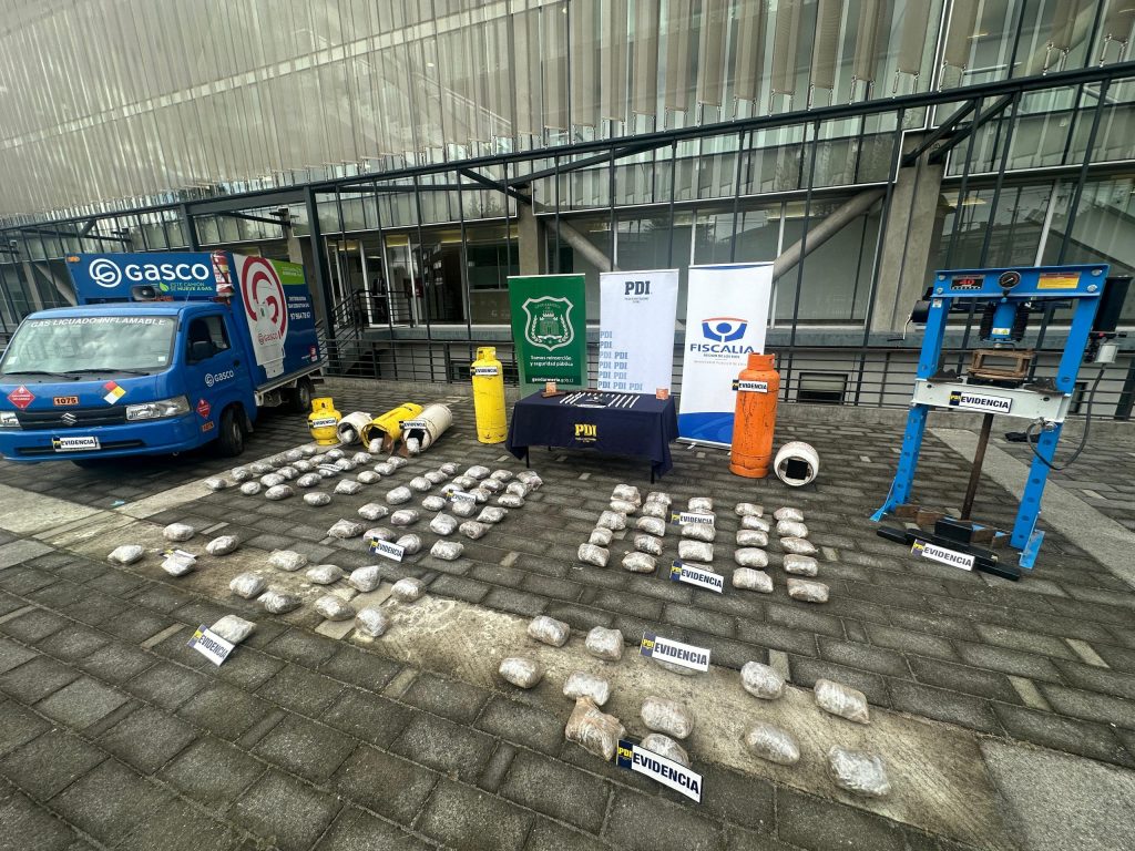 La droga, cuyo avalúo supera los 412 millones de pesos, era transportada desde la Región de O’Higgins hacia la Región de Los Ríos, ocultándose al interior de cilindros de gas para eludir los controles y evitar su detección.