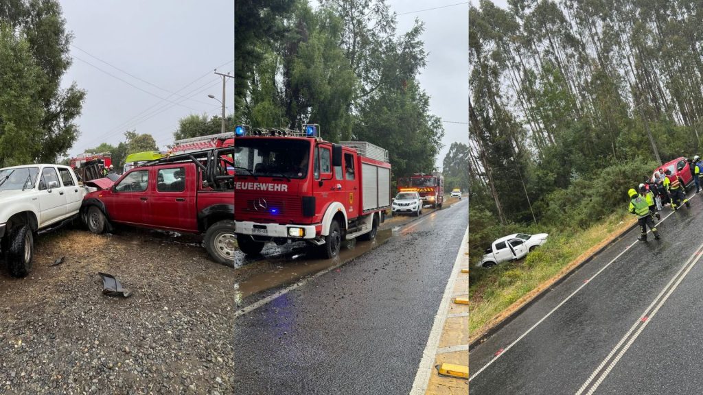 La primera emergencia se reportó en horas de la mañana en la ruta que conecta Paillaco con Santa Filomena, donde un accidente de tránsito involucró a dos automóviles. Bomberos se movilizó rápidamente para asegurar la zona y colaborar en la atención de los afectados, además de coordinar el flujo vehicular en el sector.