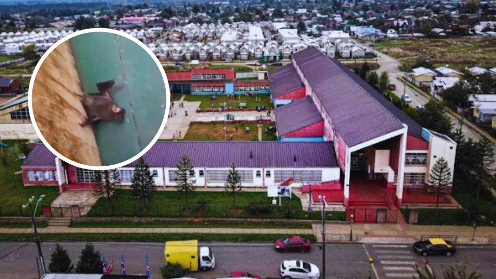 Una grave situación sanitaria mantiene suspendidas las clases en la Escuela Pampa Ríos de Río Bueno, luego de que se detectaran larvas cayendo desde el techo del segundo piso y la presencia de murciélagos en el gimnasio del recinto.