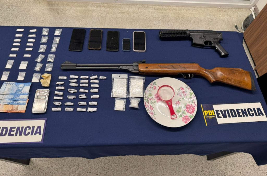 De manera paralela, en la población Montecinos de la ciudad de Osorno, se detuvo a un joven de 17 años y se incautaron más de 7 gramos de clorhidrato de cocaína, 18,40 gramos de cocaína base, además de más de 8 gramos de una sustancia desconocida, cuyo avalúo bordea los $300 mil. Junto con ello se encontró un rifle de aire comprimido y una “subametralladora” de plástico que simulaba ser un arma real, la cual utilizaban para intimidar.