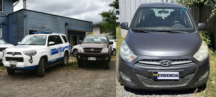 El primero de los vehículos, fue recuperado luego de una serie de diligencias en virtud a una denuncia por el delito de Hurto Simple y corresponde a una camioneta Toyota Hilux año 2007, y el segundo de los vehículos recuperados, corresponde a un automóvil Hyundai i10 año 2012 que se encontraba en poder de un tercero producto de un delito de Apropiación Indebida, junto a una lijadora, una hidrolavadora y un teléfono celular, especies que también fueron entregadas a su propietario por instrucción de la Fiscalía Local de La Unión.