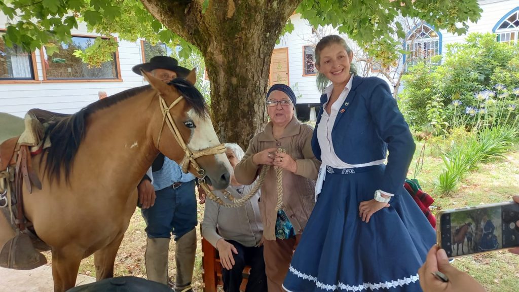 La actividad fue organizada por Vanessa Álvarez y Arturo Vergara, quienes llevan más de dos años realizando terapias equinas con “Soy Pintada”. Según Vanessa, esta yegua está completamente entrenada para interactuar con niños, enfermos y adultos mayores de manera segura. “Hoy día, con este lindo día, tuvimos una hermosa acogida de nuestros abuelitos. Están todos muy felices, se subieron al caballo también, y esperamos poder tener próximas visitas en el hogar”, señaló.